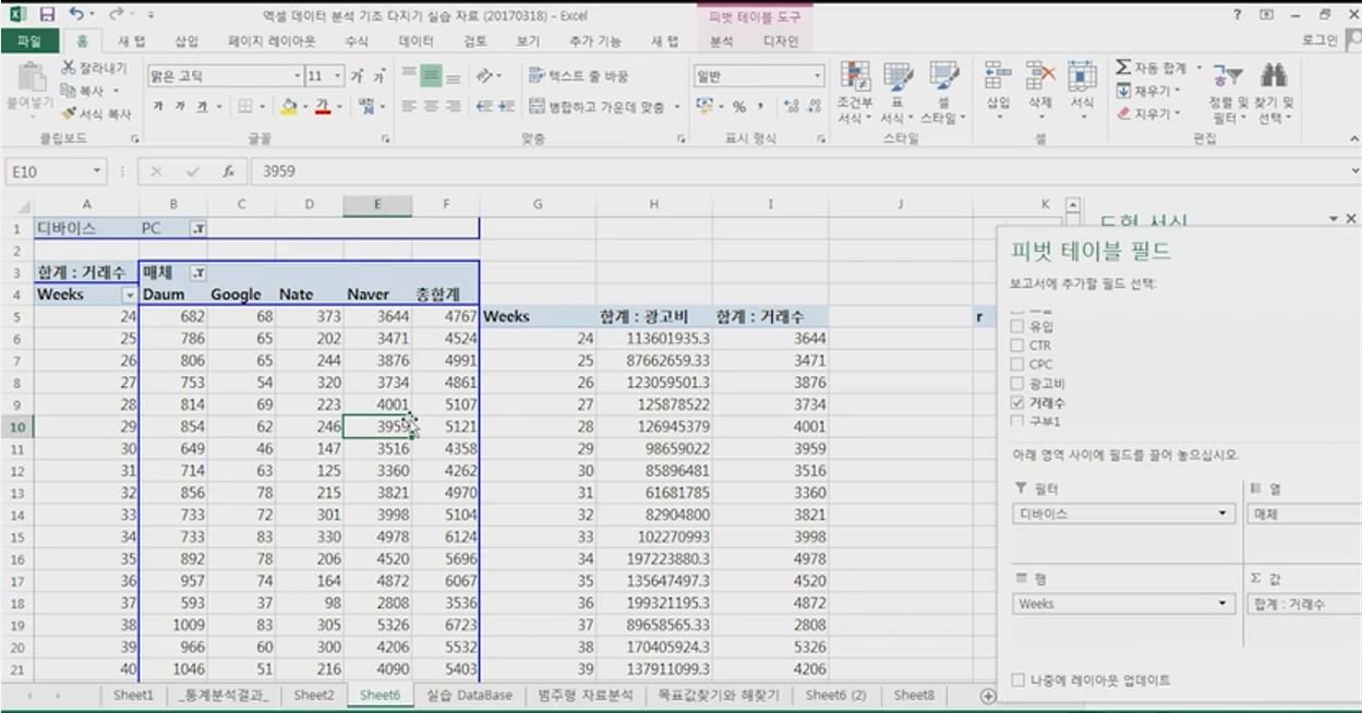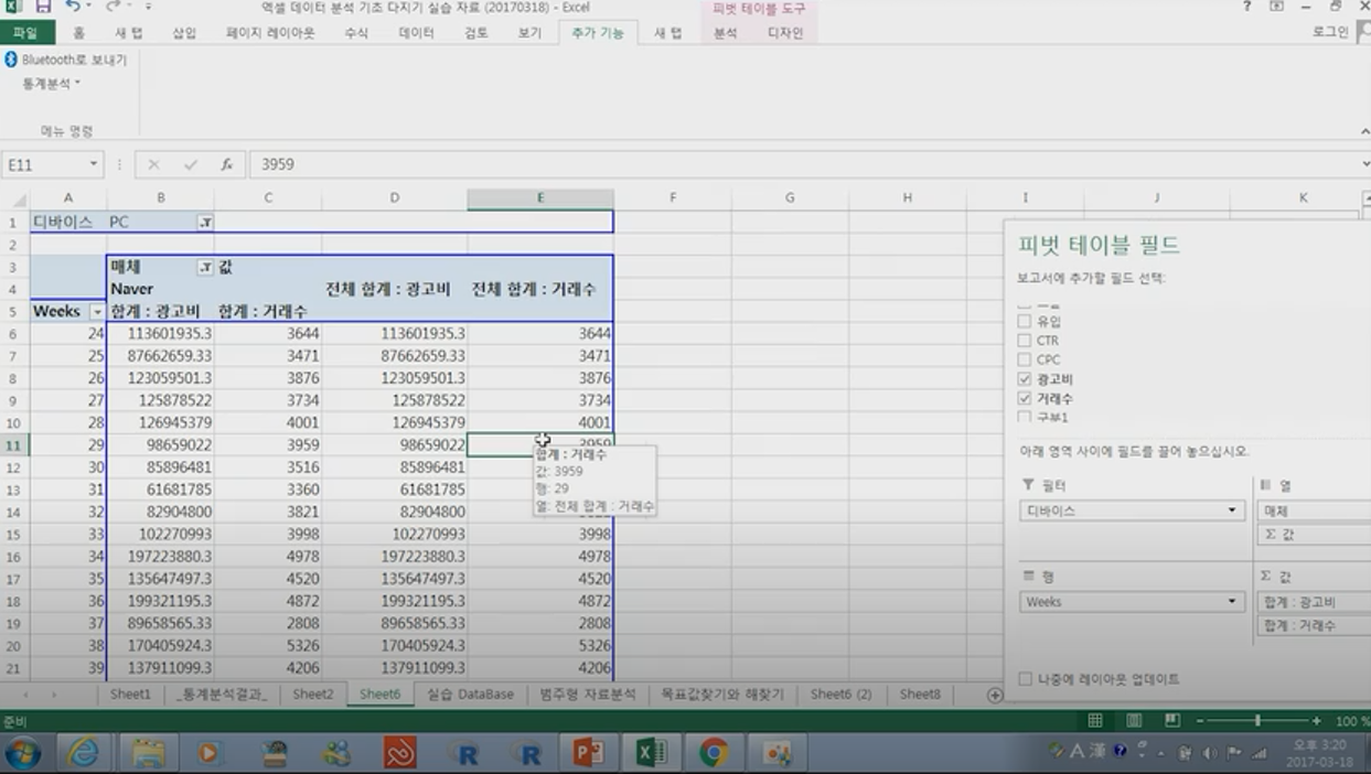 예를 들어 네이버에 광고비투자가 거래수가 영향이 있냐? 라는 것을 보고 싶을 때.