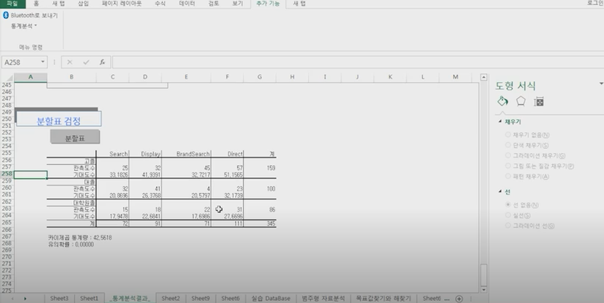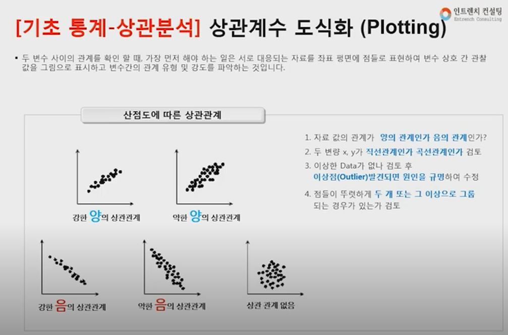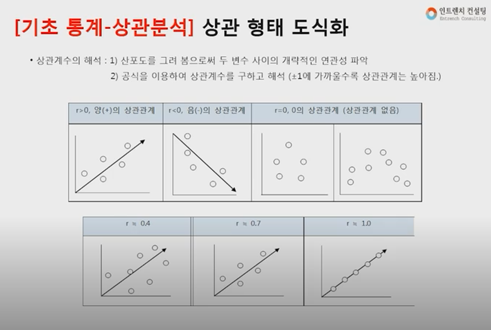 엑셀에서 하는 상관분석은 다 피어슨 상관분석. 수치형변수로 이루어진 변수.