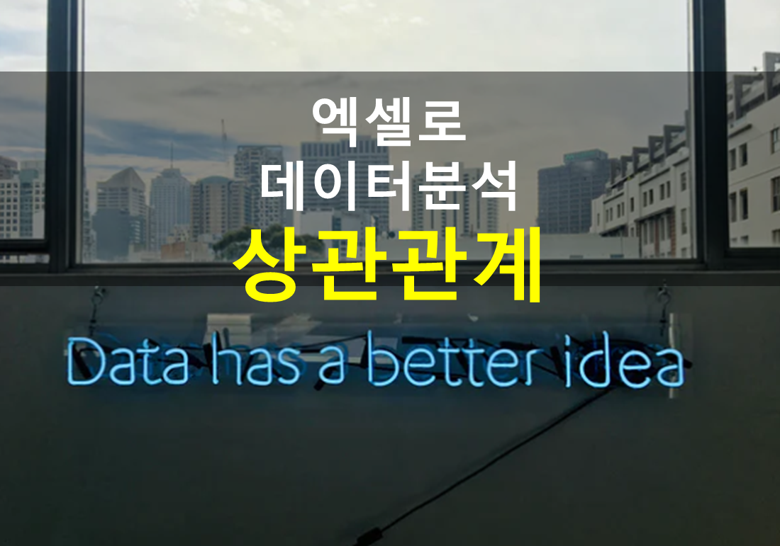 엑셀로 상관관계를 보는 방법은 CORREL 함수를 쓰거나 엑셀 통계데이터분석의 상관관계를 이용한다. R제곱값과 차트와를 하려면 산점도차트를 선택해서 그릴 수도 있다.