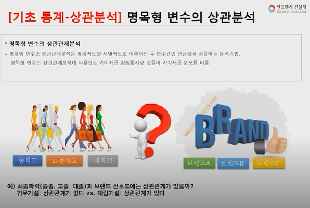 학습목표 데이터 분석 방법중 하나인 상관분석의 개념을 알아보고, 엑셀로 Pearson 상관분석을 하는 기능을 배워보도록 하겠습니다. 그리고 명목형 변수의 상관관계도 엑셀을 통해 분... - 에드위