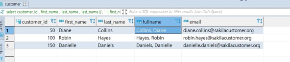 예) 각각 이름과 성을 가진 두개의 컬럼이 있는 테이블이 있고