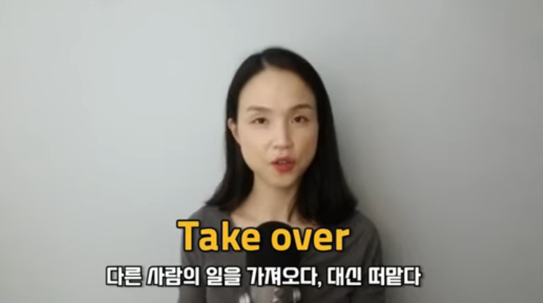 5. Take over: 다른 사람의 일을 가져오다. 대신 떠맡다.
