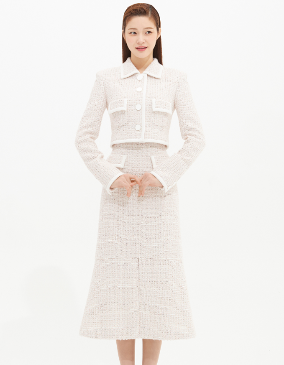 4회에서는 화이트와 아이보리 빛깔의 여자 트위드자켓과 미디스커트.