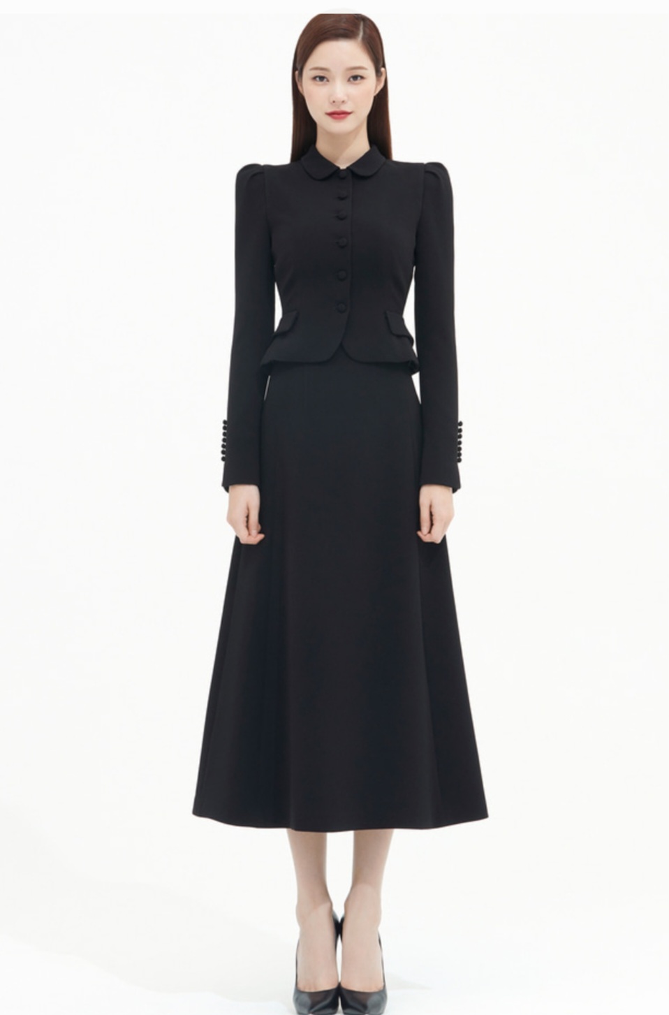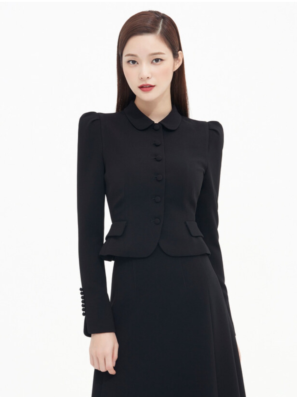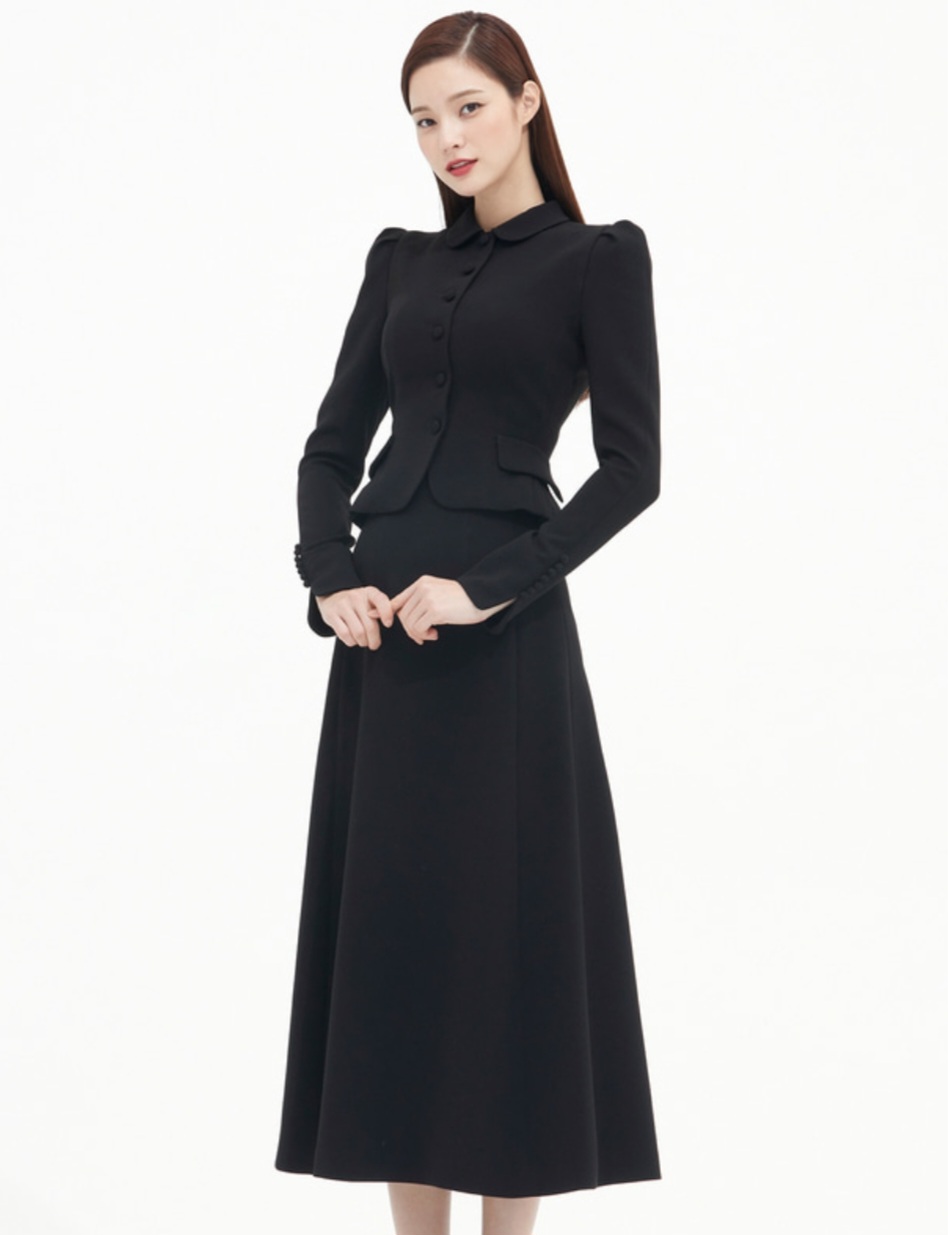윤아 킹더랜드 7회 라운드카라 블랙 자켓 롱 스커트 여자코디 브랜드 정보