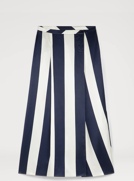 Striped Long Sleeve Shirt with Striped Foldover Pleated Skirt