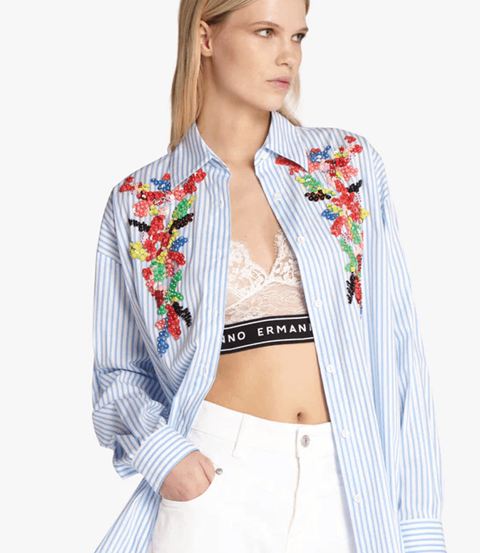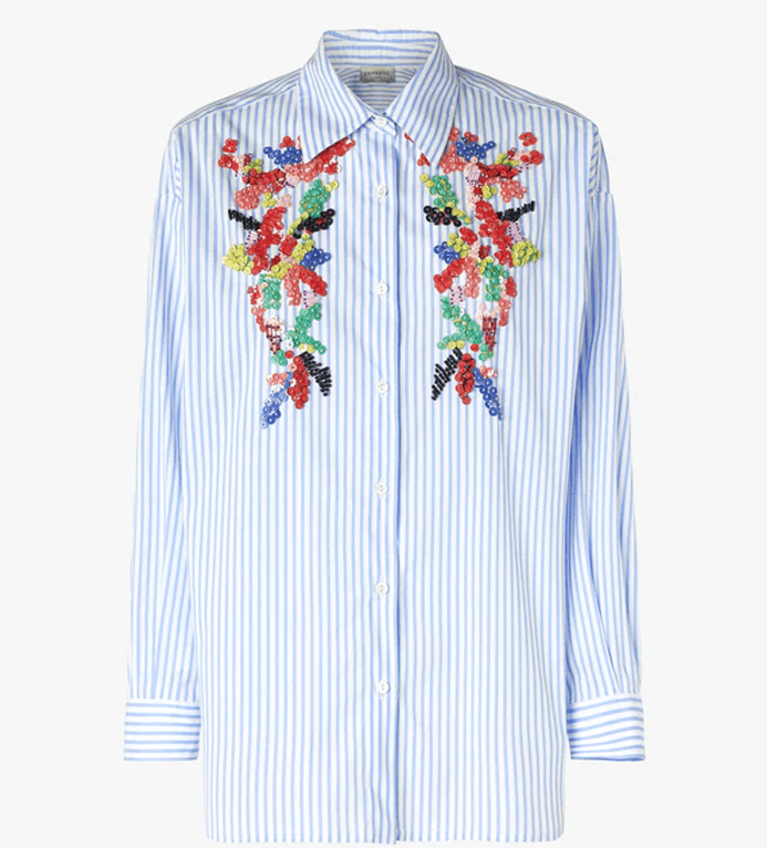 행복배틀 16회 차예련 셔츠 패션 정보입니다. 역시 이런 더운 계절에는 블루컬러의 스트라이프 셔츠가 가장 시원해보이면서도 세련되 보이는 것 같아요.