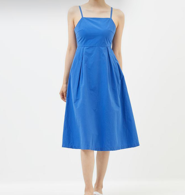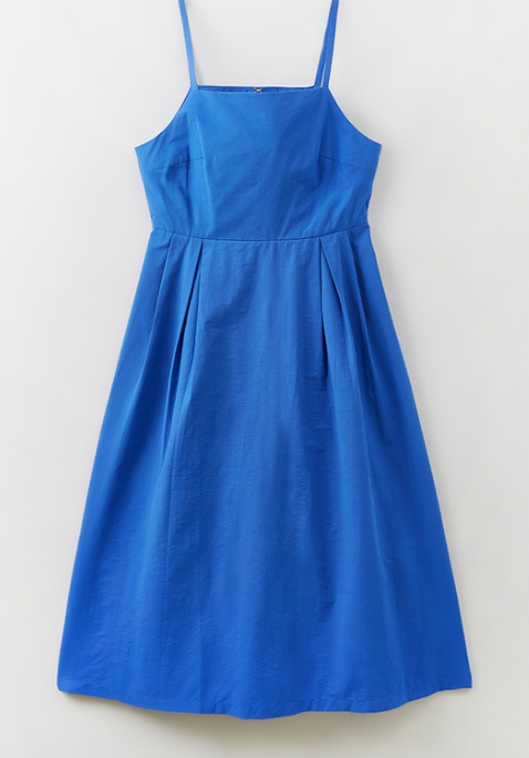 블루 파란색 컬러의 원피스를 입으셨는데요. 휴양지 패션으로도 딱인 선명한 컬러의 면 원피스입니다.