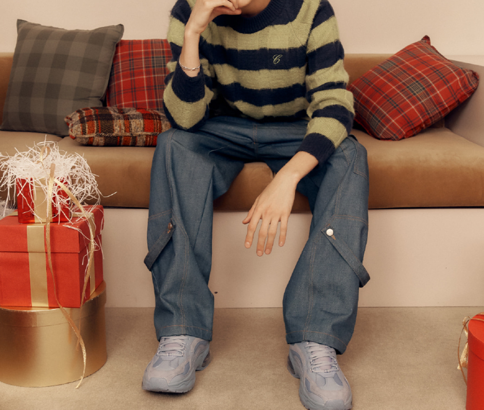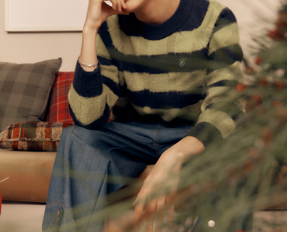 그리고 디엠을 부르는 핫한 남자! 바로 덱스가 입은 그린색과 블랙컬러가 믹스 스트라이프 니트 소개드립니다.