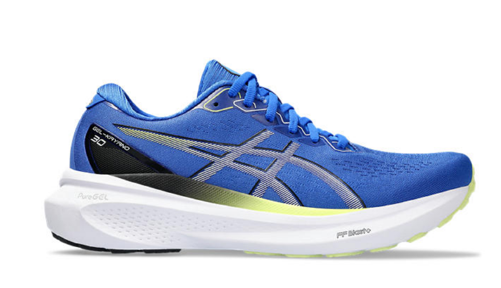 파란색 바탕인 아식스 특유의 라인이 그려진 운동화는 바로 아식스젤키야노30입니다.