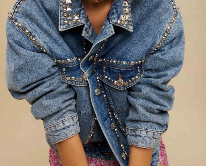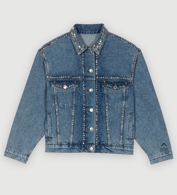 국민사형투표 1회 1화에서 임지연님이 입은 청자켓을 소개드립니다. 데님 위에 큐빅과 같은 스톤 징이 붙어있는 청자켓입니다.