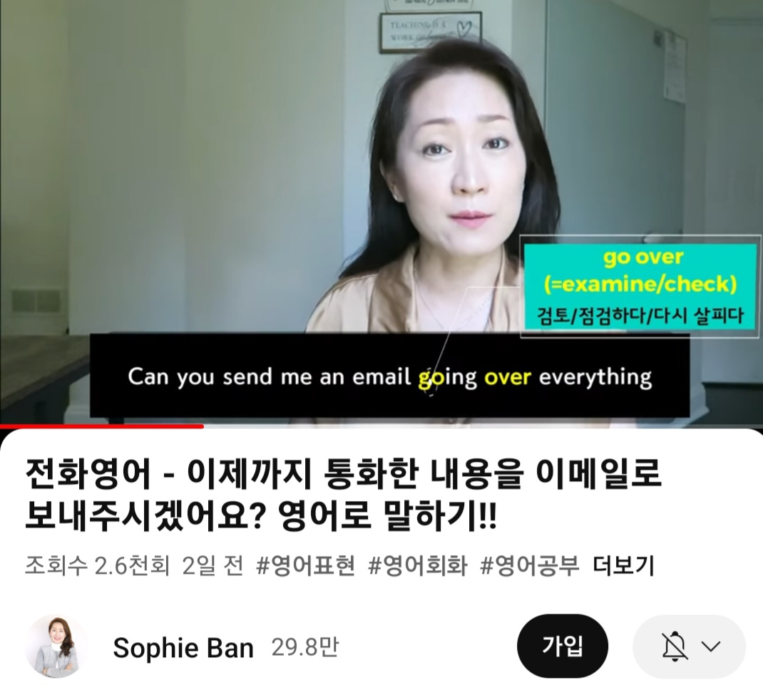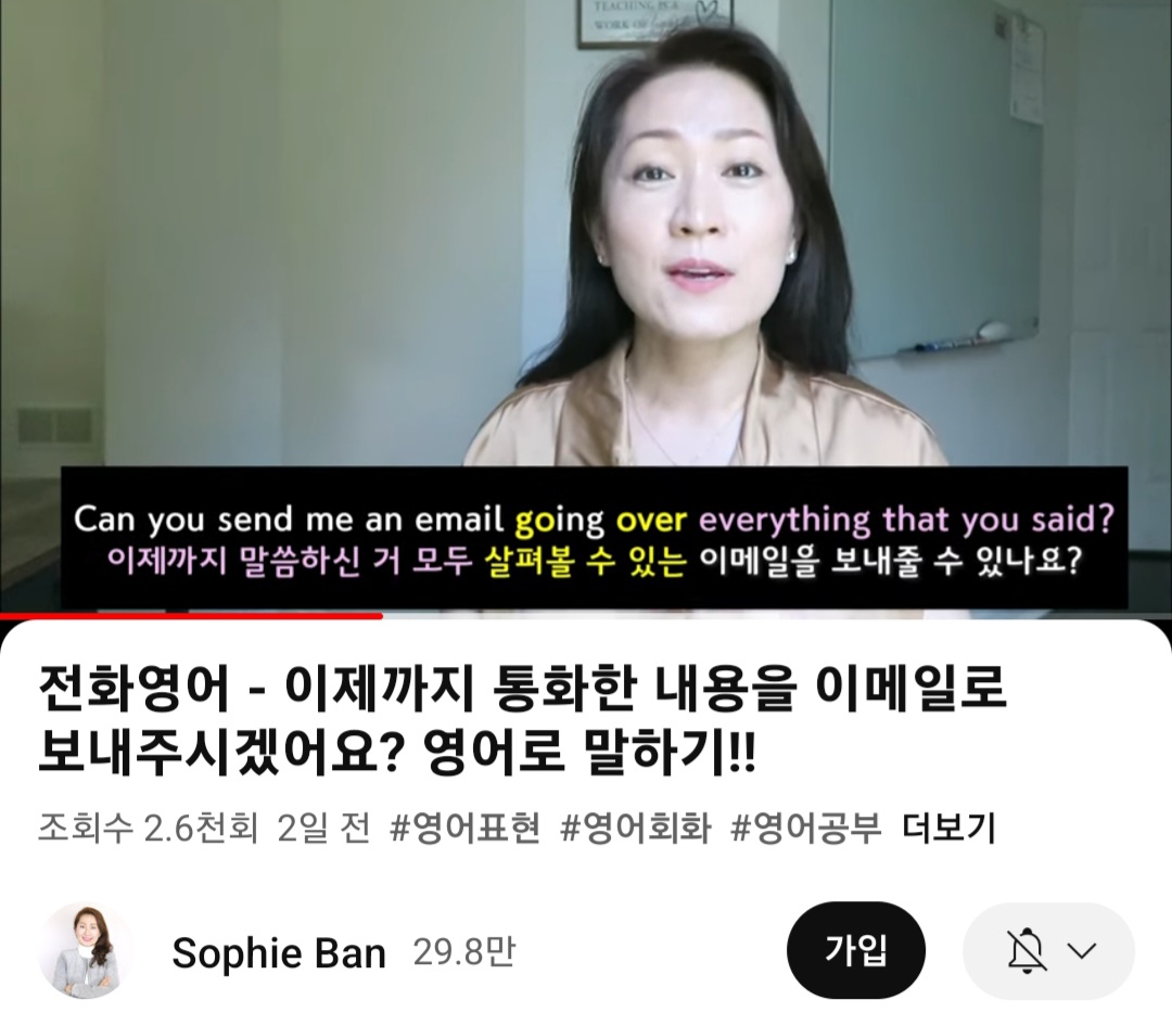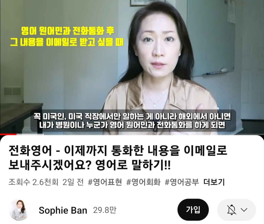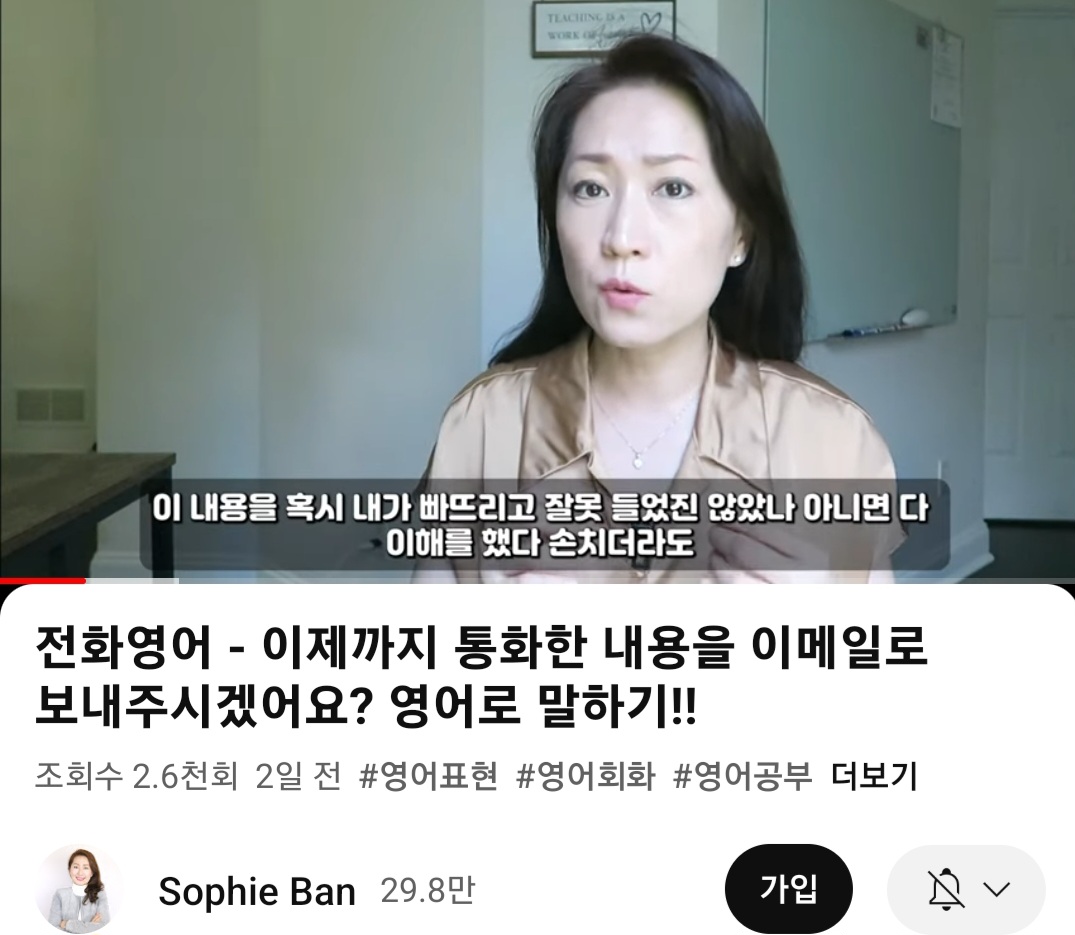 통역사 소피반님이 운영하는 유튜브 영어채널을 통해 공부한 표현들을 정리해 보려합니다. 소피반 채널은 유튜브로 영어공부하면서, 가장 먼저 보게 된 채널입니다. 정말 추천합니다. 막상 업