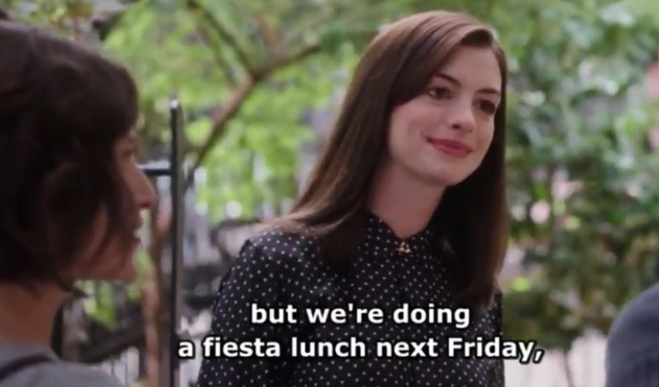 A : Uh, not sure if you got our email. But we’re doing a fiesta lunch next Friday and we thought you could bring guacamole. Uh you probably won’t have time to make it, so you can buy it.